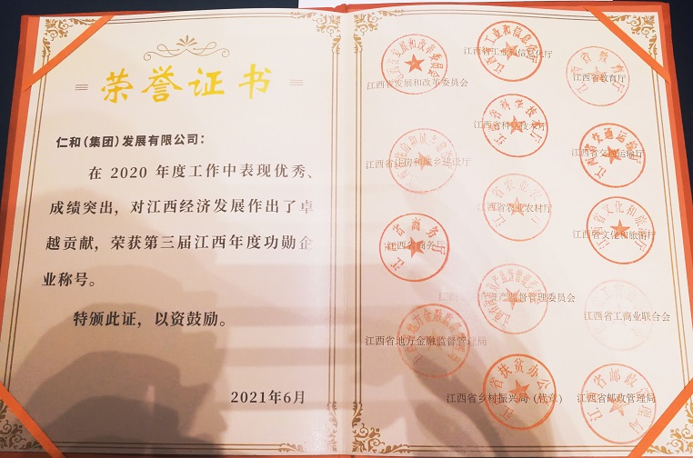 仁和集團榮獲第三屆江西年度功勛企業稱號