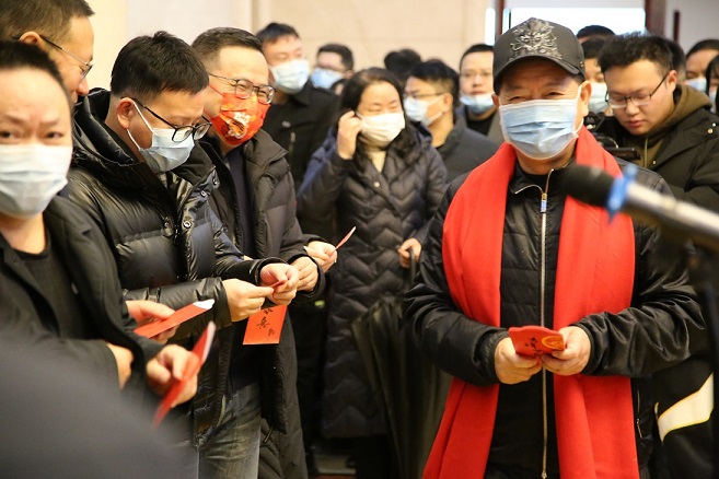 團拜會結束后,楊總、肖總給參加團拜會的干部員工派發了新春紅包,現場暖意融融。