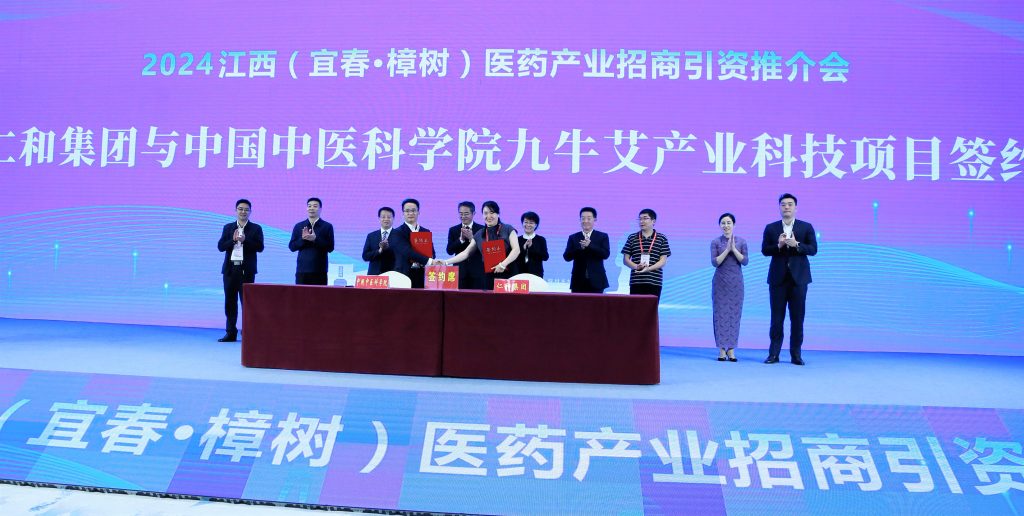 10月16 日下午,楊總前往樟樹市溫德姆酒店,參加由江西省商務廳、宜春市人民政府主辦,宜春市商務局、樟樹市人民政府共同承辦的 2024 江西(宜春?樟樹)醫(yī)藥產(chǎn)業(yè)招商引資推介會,楊瀟總及黃武軍董事、李欣董事陪同。會上,仁和集團與中國中醫(yī)科學院就 “九牛艾產(chǎn)業(yè)科技” 項目進行簽約,借助中國中醫(yī)科學院科研實力,進一步提升中醫(yī)藥領域的研發(fā)水平和核心競爭力。楊總表示,未來雙方將整合優(yōu)勢資源,在科研創(chuàng)新、產(chǎn)業(yè)應用等方面展開深度協(xié)作,為推動樟樹醫(yī)藥產(chǎn)業(yè)邁向更高層級注入強大動力。