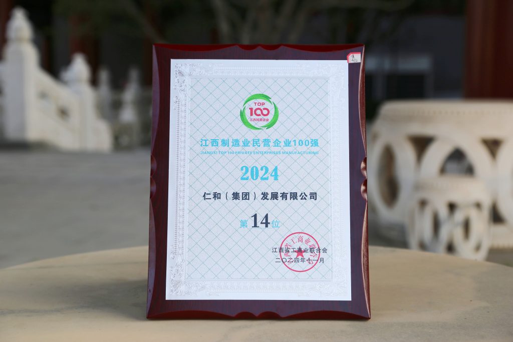仁和集團憑借出色的發展成績位列2024江西民營企業百強第16位、2024江西制造業民營企業百強第14位。仁和集團連續多年入圍該榜單,充分展現出集團平穩且向上的發展態勢,這也體現了黨和政府對仁和集團的高度認可。