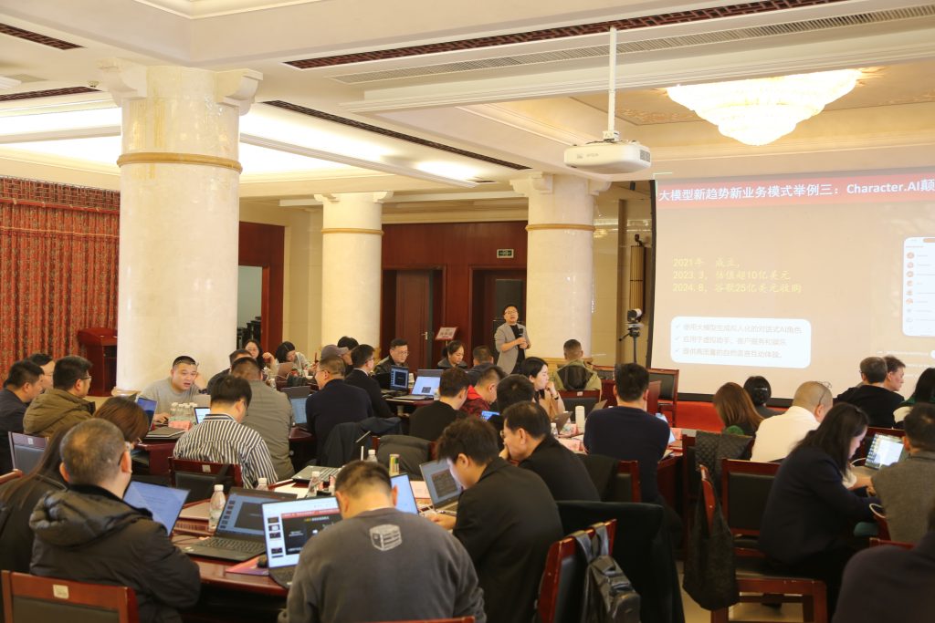 認知升維層面,鄧博士通過零售業(yè)“數(shù)據→認知→執(zhí)行”三階躍遷案例,深入剖析大模型重構產業(yè)邏輯的底層規(guī)律,提出“從經驗決策到認知智能”的范式轉換方法論;技術解密層面,鄧博士系統(tǒng)闡釋大模型“預訓練-精調-強化學習”技術鏈條,結合醫(yī)藥行業(yè)合規(guī)性要求,詳解AI在精準營銷、供應鏈優(yōu)化等場景的工程化落地路徑;實戰(zhàn)轉化層面,創(chuàng)新采用“分組研討+工作坊共創(chuàng)”模式,現(xiàn)場學員劃分為8個實戰(zhàn)小組,圍繞“場景運用”“提升效能”“營銷策略”等模塊,在鄧博士指導下完成多項智能解決方案設計,實現(xiàn)“學用一體、即訓即用”。