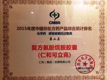 2015年度中國非處方藥產品綜合統計排名 第二名 (仁和可立克)復方氨酚烷脘膠囊 發布時間: 2019年12月18日 15:55:16 閱讀量: 9,388 下一篇:2015年度中國非處方藥產品綜合統計排名 第二名 小兒氨酚脘氨顆粒上一篇:2015年度中國非處方藥產品綜合統計排名 第一名 閃亮復方門冬維甘滴眼液