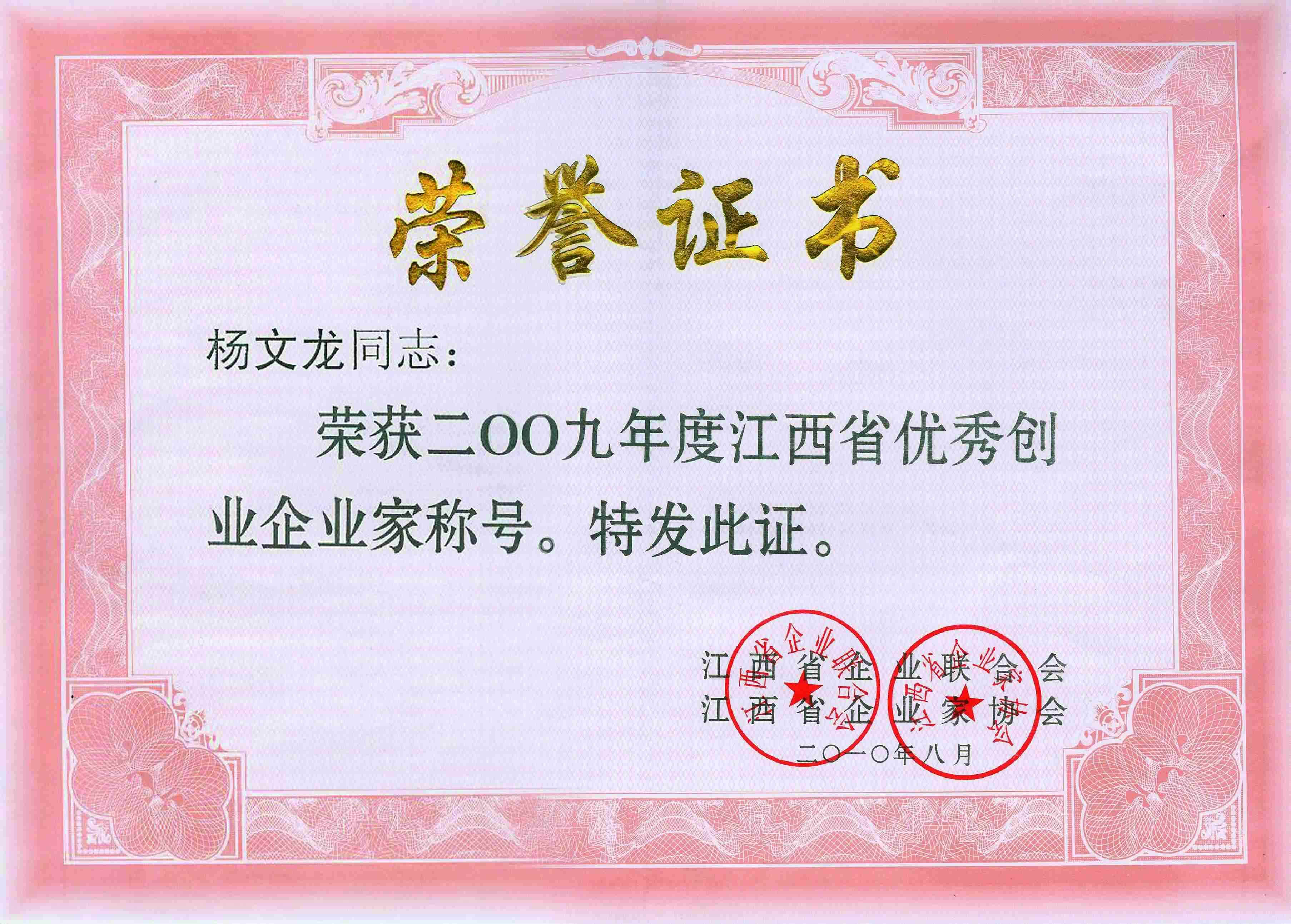 2009年度江西省優(yōu)秀創(chuàng)業(yè)企業(yè)家稱號 發(fā)布時間: 2019年12月18日 16:26:50 閱讀量: 10,818 下一篇:改革開放30年江西省十大杰出建設(shè)者上一篇:2009年度優(yōu)秀企業(yè)家